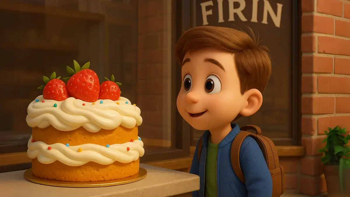 Bir gün okul çıkışı, Tuna yorgun ama neşeli adımlarla yürürken gözleri birden vitrindeki o muhteşem pastaya takılmış. Pastanın üstü çileklerle süslenmiş, rengârenk şekerlerle parıldıyormuş.