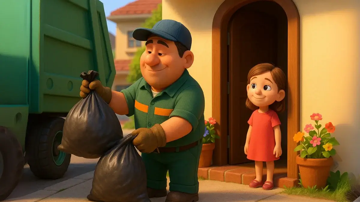 Her gün aynı saatte, elinde büyük bir çöp arabasıyla geçen çöpçü amcayı fark eder ama onun işinin ne kadar önemli olduğunu hiç düşünmezmiş.
