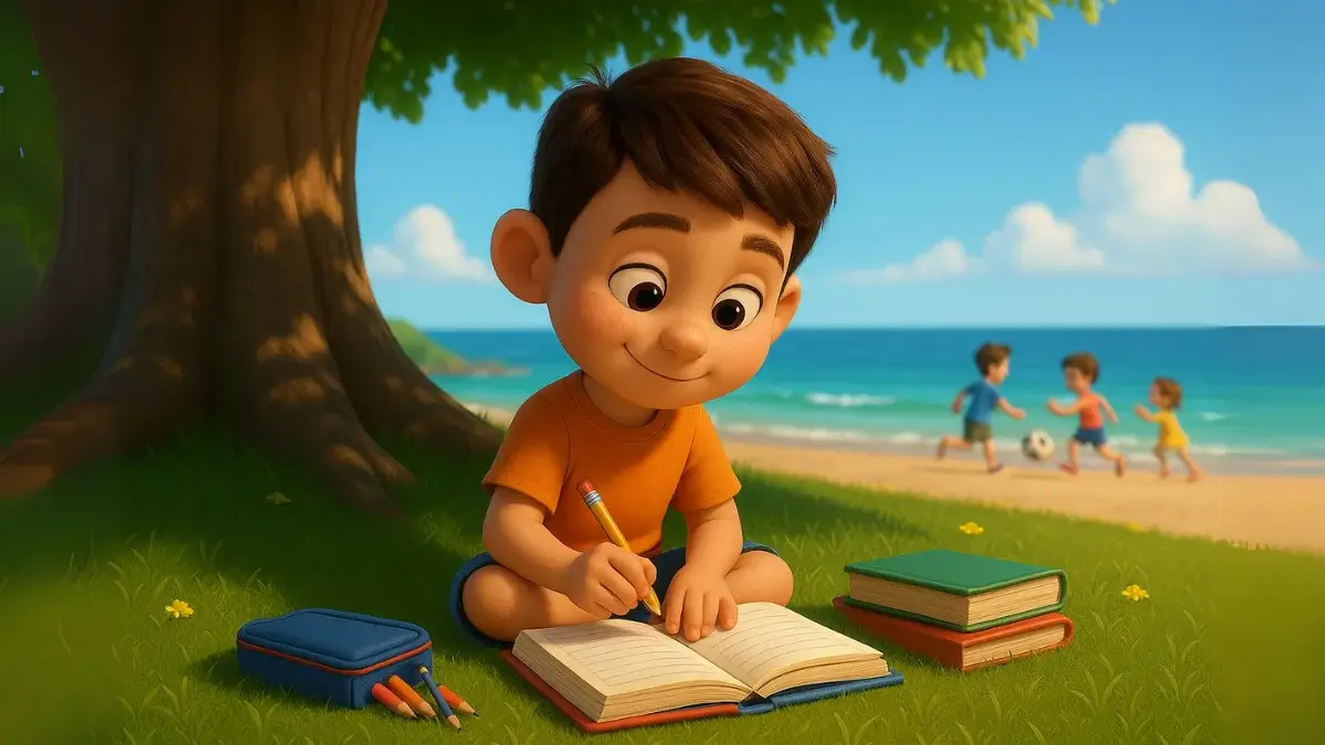 Çınar ağacının gölgesine oturup defterini açmış. İlk sayfaya baktığında biraz zorlanmış, kalemi elinde yavaşça hareket ettirmiş. Ama birkaç soru çözdükçe cevapların aklına gelmeye başladığını fark etmiş. Bu keşif onu heyecanlandırmış, yüzünde kocaman bir gülümseme yaratmış.