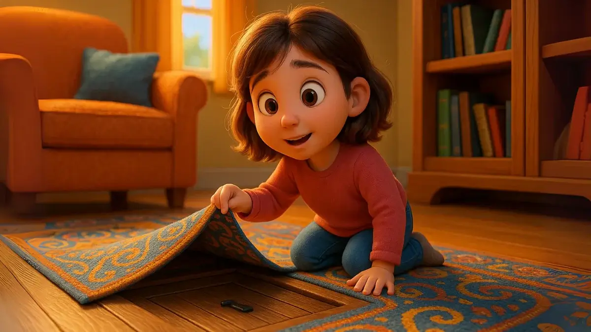 O sabah, salondaki halının köşesinin kıvrıldığını fark etmiş. Eğilip halıyı düzeltmek istediğinde, altında tahta bir kapak görmüş. Bu kapağı daha önce hiç görmediği için şaşırmış. Merakı artınca el fenerini alıp kapağı dikkatlice açmış.