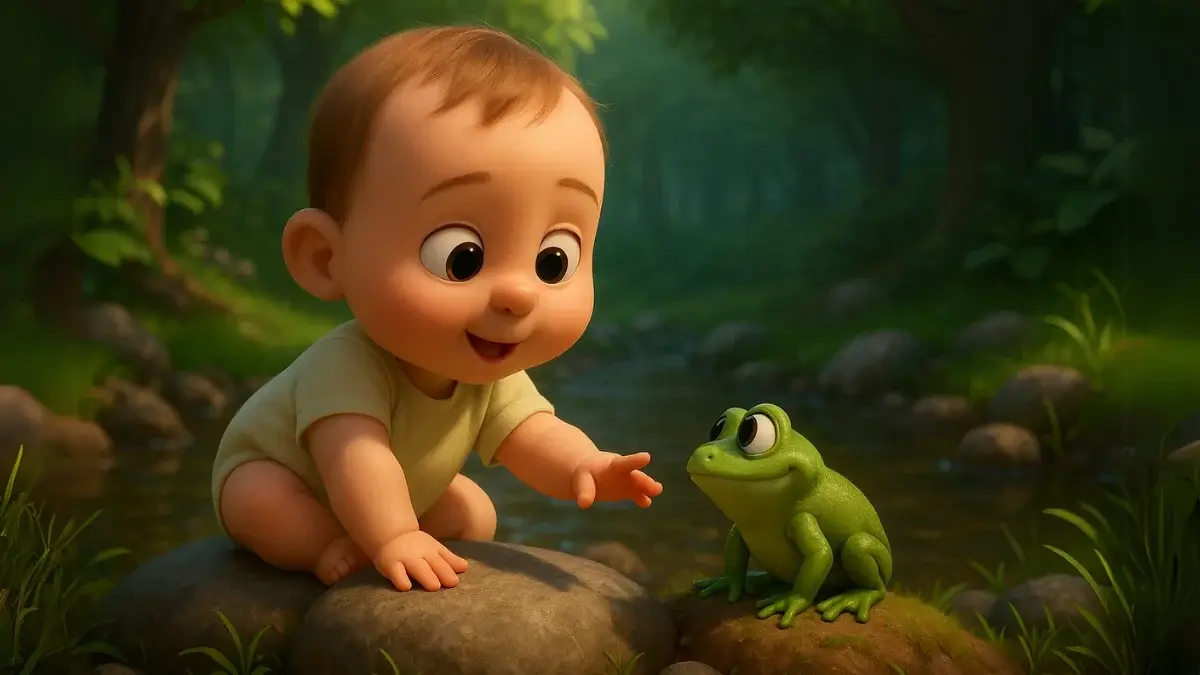 Tam o sırada, suyun içinden bir kurbağa zıplayarak taşın kenarına çıkmış. “Merhaba minik,” demiş gülümseyerek. “Su bazen konuşmaz ama şıpırtısıyla oyun oynar.” Bebek elindeki taşı yere bırakmış, sonra sessizce suya bakmaya devam etmiş.