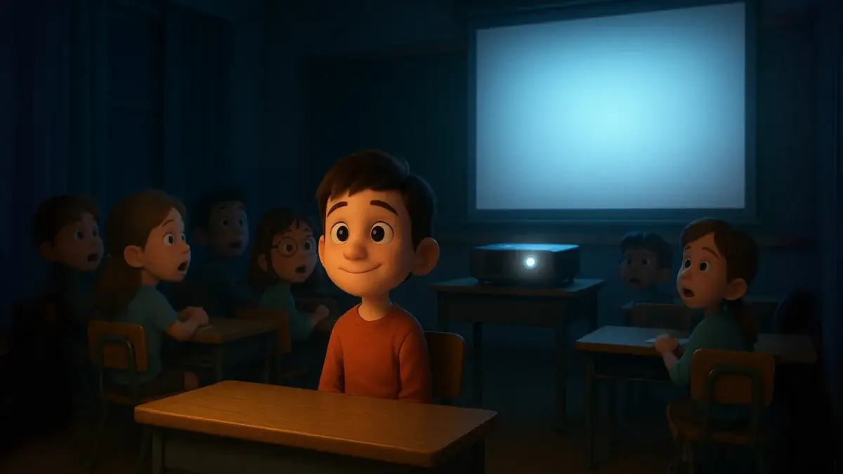 Tam o anda cihazdan ince bir ışık süzülmüş. Ekran hafifçe titremiş, ardından görüntü yavaş yavaş belirmeye başlamış. Belgeselin açılış müziği duyulmuş, sınıfın havası bir anda değişmiş. Çocuklar sevinçle kıpırdanmış, bazıları alkışlamış bile.