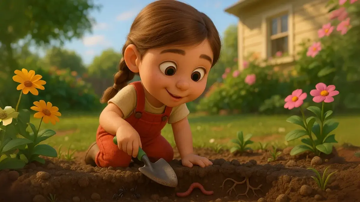 Bir varmış, bir yokmuş. Bir zamanlar toprağı çok seven, meraklı mı meraklı bir kız çocuğu varmış. Adı Zeynep’miş. Her sabah eline minik küreğini alır, evlerinin bahçesindeki çiçeklerin yanına otururmuş. Toprağın altına baktıkça içi kıpır kıpır olur, kendi kendine sorarmış: “Acaba yerin altında neler varmış?”
